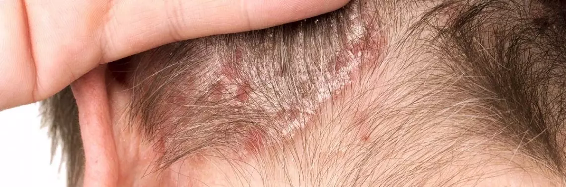 Łuszczyca owłosionej skóry głowy to przewlekła, nawrotowa choroba skóry o charakterze zapalno-proliferacyjnym, cechująca się występowaniem typowych grudek i blaszek pokrytych dużą liczbą srebrzystobiałej łuski i dotyczy ponad 2% populacji. Mogą zajmować czoło, kark oraz okolicę małżowin usznych. Jeżeli występuje wzmożony łojotok, tworzą się brunatnożółte miękkie i tłuste łuski. Wtedy są trudności w odróżnieniu łuszczycy owłosionej skóry głowy od łojotokowego zapalenia skóry głowy (ŁZS). Wskazana w tej sytuacji jest biopsja skalpu, aby ustalić ostateczną diagnozę. Czasami zmianom tym towarzyszy różnie nasilony świąd, który wymaga leczenia przeciwhistaminowego. Pomimo że głowa stanowi tylko ok. 9% całkowitej powierzchni ciała, zajęcie widocznych części głowy i szyi ma istotny wpływ na pogorszenie jakości życia chorych – ogranicza codzienną aktywność i funkcjonowanie w społeczeństwie, szczególnie jeśli zajęta jest skóra twarzy [1].