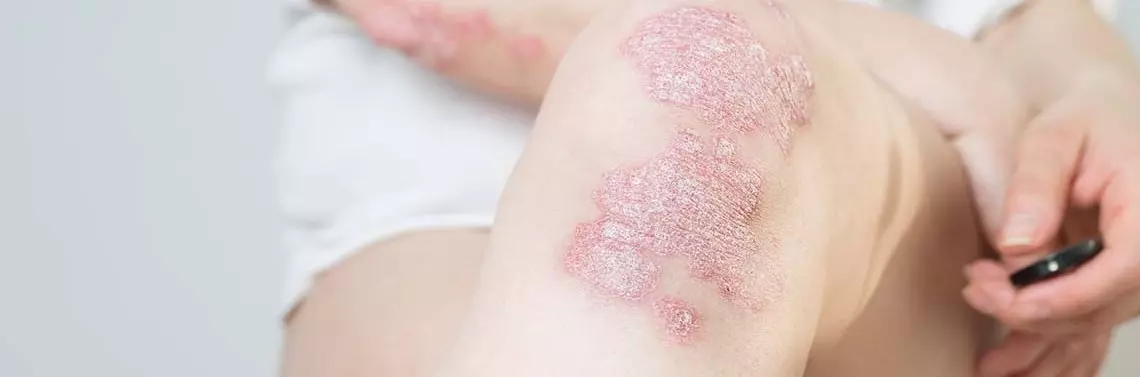 Podstawowymi wykwitami w przebiegu łuszczycy są grudki i blaszki pokryte łuską, którym często towarzyszy świąd, a niekiedy ból. Charakterystycznym objawem w przebiegu łuszczycy jest powstanie wykwitu w miejscu urazu skóry, co nazywamy objawem Köbnera. Zazwyczaj jest on obserwowany w przebiegu aktywnej formy choroby, ale może być też jej pierwszym symptomem [13].