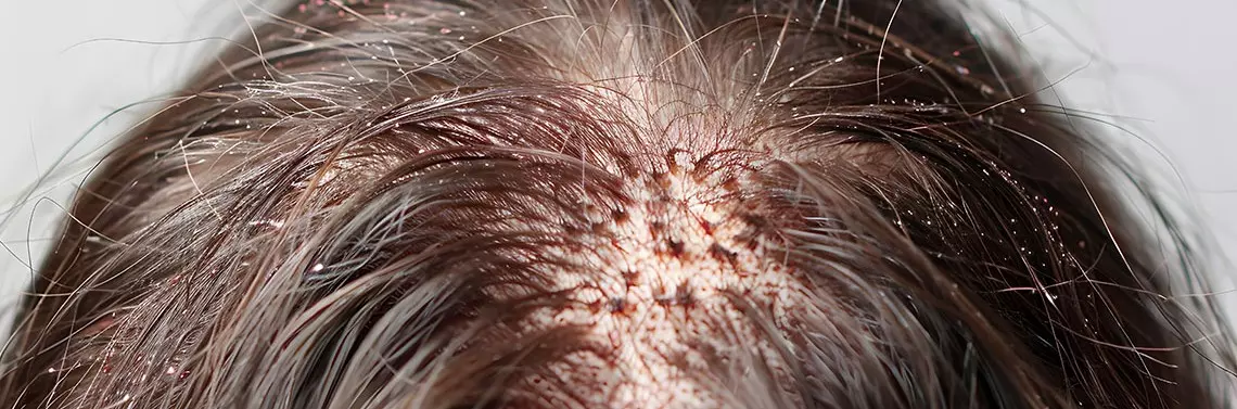 Zmiany są zlokalizowane głównie w okolicach bogatych w gruczoły łojowe, w tym na skórze głowy i twarzy.