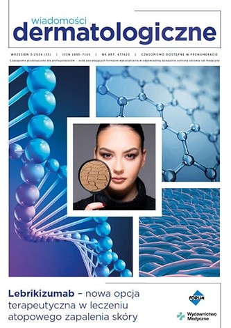 W tym wydaniu m.in: zastosowanie toksyny botulinowej, łysienie androgenowe, dermatoskopia w diagnostyce czerniaka, neuralgia popółpaścowa i powikłania półpaśca, Lebrikizumab.